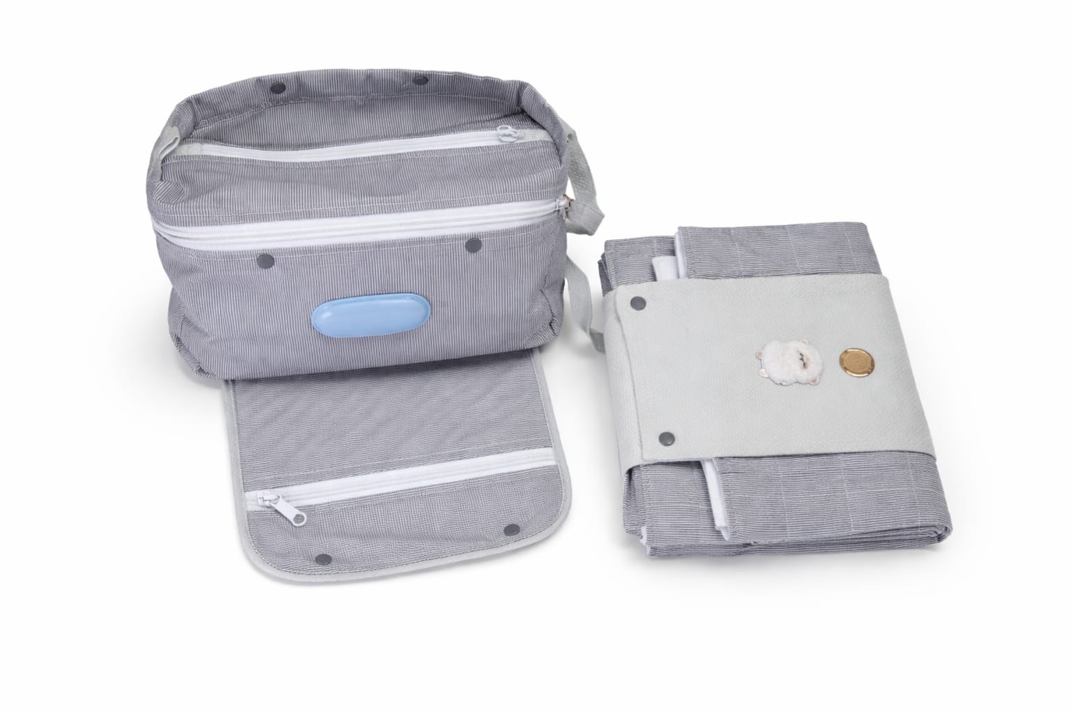 Composto por bolsa maternidade e troca, este conjunto de funcionalidades, especificidades e um design delicado, ideal para os primeiros meses do bebê.
